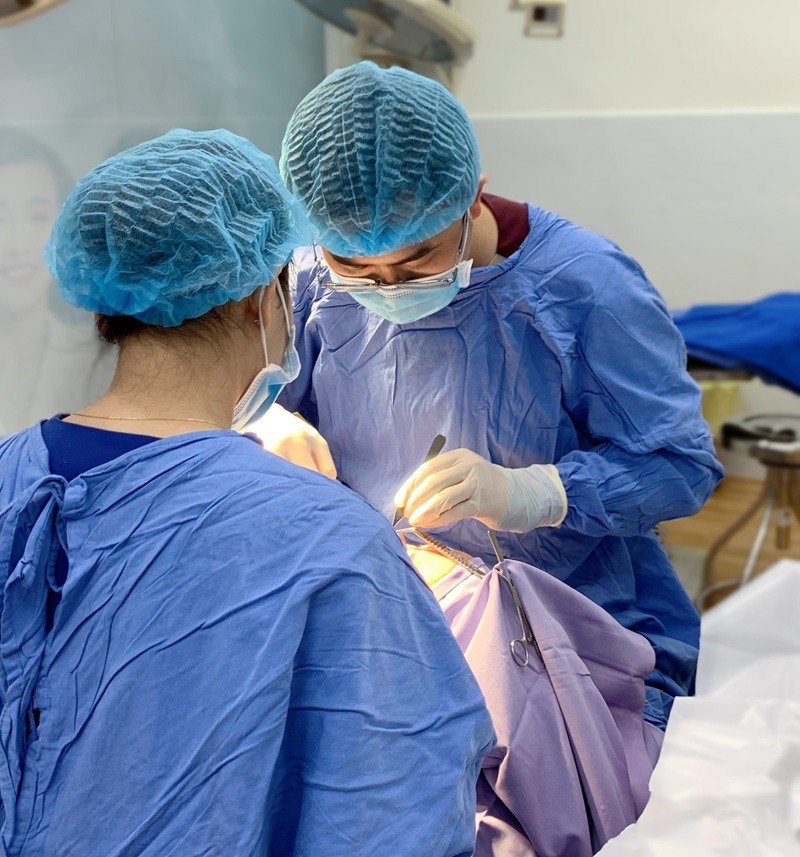 - Bước 4: Ca phẫu thuật được tiến hành tại phòng mổ vô khuẩn, trang thiết bị hiện đại từ Hàn Quốc, đội ngũ bác sĩ giàu kinh nghiệm trực tiếp thực hiện, đảm bảo an toàn tối đa và kết quả chính xác.