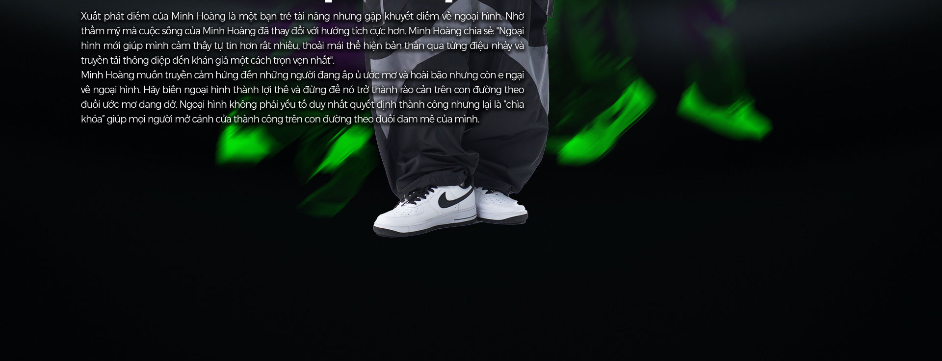 Trần Minh Hoàng - chàng dancer Gen Z được biết đến với những bước nhảy điêu luyện và đầy cảm xúc. Thế nhưng, sau ánh hào quang ấy là một câu chuyện về hành trình thay đổi ngoại hình, vượt qua mặc cảm để thăng hoa trong từng điệu nhảy.